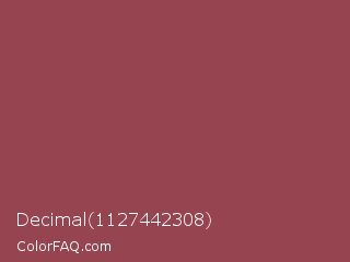 Decimal 1127442308 Color is a normal red color and the nearest color is Copper Rust #944747. Hex code #954450 and RGB value is rgb(149,68,80). In RGB color space, this color is composed of 58% red, 27% green, 31% blue, In CMYK color space, this color is composed of 0% cyan, 54% magenta, 46% yellow , 42% black , In HSL color space, this color has a hue angle of 351° , 37% saturation and 43% lightness.