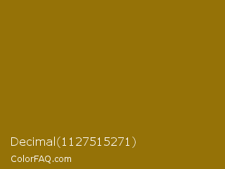 Decimal 1127515271 Color is a normal orange color and the nearest color is Corn Harvest #8b6b0b. Hex code #957207 and RGB value is rgb(149,114,7). In RGB color space, this color is composed of 58% red, 45% green, 3% blue, In CMYK color space, this color is composed of 0% cyan, 23% magenta, 95% yellow , 42% black , In HSL color space, this color has a hue angle of 45° , 91% saturation and 31% lightness.