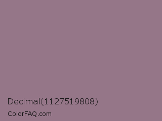 Decimal 1127519808 Color is a normal magenta color and the nearest color is Mountbatten Pink #997a8d. Hex code #957688 and RGB value is rgb(149,118,136). In RGB color space, this color is composed of 58% red, 46% green, 53% blue, In CMYK color space, this color is composed of 0% cyan, 21% magenta, 9% yellow , 42% black , In HSL color space, this color has a hue angle of 325° , 13% saturation and 52% lightness.