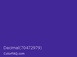 Decimal 70472979 Color is a normal indigo color and the nearest color is Daisy Bush #4f2398. Hex code #422799 and RGB value is rgb(66,39,153). In RGB color space, this color is composed of 26% red, 15% green, 60% blue, In CMYK color space, this color is composed of 57% cyan, 75% magenta, 0% yellow , 40% black , In HSL color space, this color has a hue angle of 254° , 59% saturation and 38% lightness.