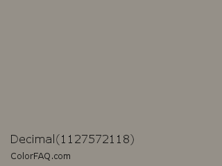 Decimal 1127572118 Color is a normal orange color and the nearest color is Stack #8a8f8a. Hex code #959088 and RGB value is rgb(149,144,136). In RGB color space, this color is composed of 58% red, 56% green, 53% blue, In CMYK color space, this color is composed of 0% cyan, 3% magenta, 9% yellow , 42% black , In HSL color space, this color has a hue angle of 37° , 6% saturation and 56% lightness.