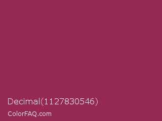 Decimal 1127830546 Color is a normal rose color and the nearest color is Dark Raspberry #872657. Hex code #962954 and RGB value is rgb(150,41,84). In RGB color space, this color is composed of 59% red, 16% green, 33% blue, In CMYK color space, this color is composed of 0% cyan, 73% magenta, 44% yellow , 41% black , In HSL color space, this color has a hue angle of 336° , 57% saturation and 37% lightness.