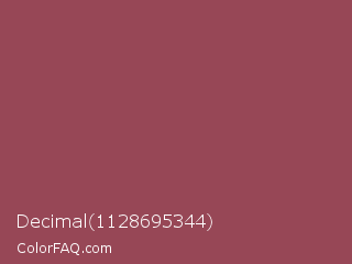 Decimal 1128695344 Color is a normal red color and the nearest color is Vin Rouge #983d61. Hex code #974756 and RGB value is rgb(151,71,86). In RGB color space, this color is composed of 59% red, 28% green, 34% blue, In CMYK color space, this color is composed of 0% cyan, 53% magenta, 43% yellow , 41% black , In HSL color space, this color has a hue angle of 349° , 36% saturation and 44% lightness.