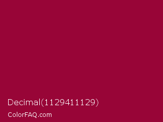 Decimal 1129411129 Color is a normal rose color and the nearest color is Pink Raspberry #980036. Hex code #980537 and RGB value is rgb(152,5,55). In RGB color space, this color is composed of 60% red, 2% green, 22% blue, In CMYK color space, this color is composed of 0% cyan, 97% magenta, 64% yellow , 40% black , In HSL color space, this color has a hue angle of 340° , 94% saturation and 31% lightness.