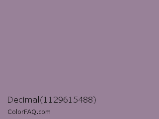Decimal 1129615488 Color is a normal magenta color and the nearest color is Venus #928590. Hex code #988198 and RGB value is rgb(152,129,152). In RGB color space, this color is composed of 60% red, 51% green, 60% blue, In CMYK color space, this color is composed of 0% cyan, 15% magenta, 0% yellow , 40% black , In HSL color space, this color has a hue angle of 300° , 10% saturation and 55% lightness.