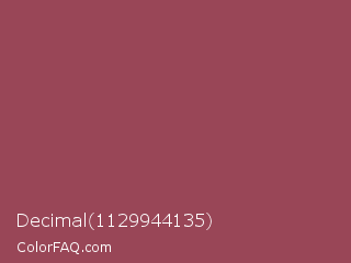 Decimal 1129944135 Color is a normal red color and the nearest color is Vin Rouge #983d61. Hex code #994657 and RGB value is rgb(153,70,87). In RGB color space, this color is composed of 60% red, 27% green, 34% blue, In CMYK color space, this color is composed of 0% cyan, 54% magenta, 43% yellow , 40% black , In HSL color space, this color has a hue angle of 348° , 37% saturation and 44% lightness.