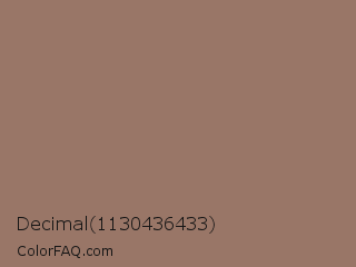 Decimal 1130436433 Color is a normal orange color and the nearest color is Toast #9a6e61. Hex code #997667 and RGB value is rgb(153,118,103). In RGB color space, this color is composed of 60% red, 46% green, 40% blue, In CMYK color space, this color is composed of 0% cyan, 23% magenta, 33% yellow , 40% black , In HSL color space, this color has a hue angle of 18° , 20% saturation and 50% lightness.