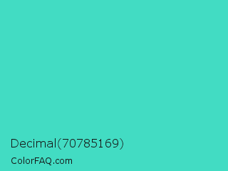 Decimal 70785169 Color is a normal cyan color and the nearest color is Turquoise #40e0d0. Hex code #42dcc3 and RGB value is rgb(66,220,195). In RGB color space, this color is composed of 26% red, 86% green, 76% blue, In CMYK color space, this color is composed of 70% cyan, 0% magenta, 11% yellow , 14% black , In HSL color space, this color has a hue angle of 170° , 69% saturation and 56% lightness.