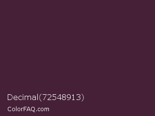Decimal 72548913 Color is a very dark magenta color and the nearest color is Livid Brown #4d282e. Hex code #452037 and RGB value is rgb(69,32,55). In RGB color space, this color is composed of 27% red, 13% green, 22% blue, In CMYK color space, this color is composed of 0% cyan, 54% magenta, 20% yellow , 73% black , In HSL color space, this color has a hue angle of 323° , 37% saturation and 20% lightness.