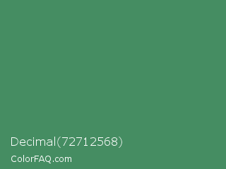 Decimal 72712568 Color is a normal green color and the nearest color is Middle Green #4d8c57. Hex code #458d62 and RGB value is rgb(69,141,98). In RGB color space, this color is composed of 27% red, 55% green, 38% blue, In CMYK color space, this color is composed of 51% cyan, 0% magenta, 30% yellow , 45% black , In HSL color space, this color has a hue angle of 144° , 34% saturation and 41% lightness.
