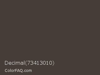 Decimal 73413010 Color is a dark orange color and the nearest color is Armadillo #433e37. Hex code #463d38 and RGB value is rgb(70,61,56). In RGB color space, this color is composed of 27% red, 24% green, 22% blue, In CMYK color space, this color is composed of 0% cyan, 13% magenta, 20% yellow , 73% black , In HSL color space, this color has a hue angle of 21° , 11% saturation and 25% lightness.