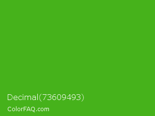 Decimal 73609493 Color is a normal green color and the nearest color is Kelly Green #4cbb17. Hex code #46b21b and RGB value is rgb(70,178,27). In RGB color space, this color is composed of 27% red, 70% green, 11% blue, In CMYK color space, this color is composed of 61% cyan, 0% magenta, 85% yellow , 30% black , In HSL color space, this color has a hue angle of 103° , 74% saturation and 40% lightness.