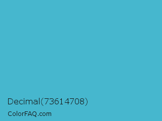 Decimal 73614708 Color is a normal cyan color and the nearest color is Maximum Blue #47abcc. Hex code #46b7ce and RGB value is rgb(70,183,206). In RGB color space, this color is composed of 27% red, 72% green, 81% blue, In CMYK color space, this color is composed of 66% cyan, 11% magenta, 0% yellow , 19% black , In HSL color space, this color has a hue angle of 190° , 58% saturation and 54% lightness.