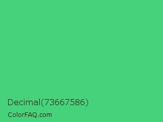 Decimal 73667586 Color is a normal green color and the nearest color is Emerald #50c878. Hex code #46d27a and RGB value is rgb(70,210,122). In RGB color space, this color is composed of 27% red, 82% green, 48% blue, In CMYK color space, this color is composed of 67% cyan, 0% magenta, 42% yellow , 18% black , In HSL color space, this color has a hue angle of 142° , 61% saturation and 55% lightness.