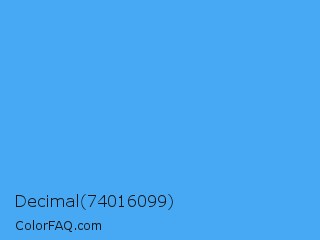 Decimal 74016099 Color is a light blue color and the nearest color is Picton Blue #45b1e8. Hex code #47a9f3 and RGB value is rgb(71,169,243). In RGB color space, this color is composed of 28% red, 66% green, 95% blue, In CMYK color space, this color is composed of 71% cyan, 30% magenta, 0% yellow , 5% black , In HSL color space, this color has a hue angle of 206° , 88% saturation and 62% lightness.