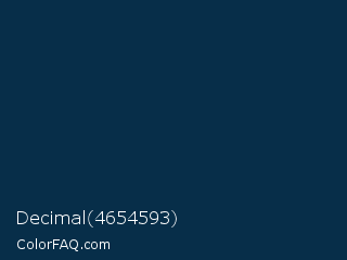 Decimal 4654593 Color is a very dark blue color and the nearest color is Blue Whale #042e4c. Hex code #072e49 and RGB value is rgb(7,46,73). In RGB color space, this color is composed of 3% red, 18% green, 29% blue, In CMYK color space, this color is composed of 90% cyan, 37% magenta, 0% yellow , 71% black , In HSL color space, this color has a hue angle of 205° , 83% saturation and 16% lightness.