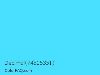 Decimal 74515351 Color is a light cyan color and the nearest color is Turquoise Blue #6cdae7. Hex code #47dffd and RGB value is rgb(71,223,253). In RGB color space, this color is composed of 28% red, 87% green, 99% blue, In CMYK color space, this color is composed of 72% cyan, 12% magenta, 0% yellow , 1% black , In HSL color space, this color has a hue angle of 190° , 98% saturation and 64% lightness.