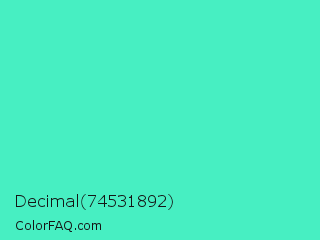 Decimal 74531892 Color is a light cyan color and the nearest color is Turquoise #40e0d0. Hex code #47efc2 and RGB value is rgb(71,239,194). In RGB color space, this color is composed of 28% red, 94% green, 76% blue, In CMYK color space, this color is composed of 70% cyan, 0% magenta, 19% yellow , 6% black , In HSL color space, this color has a hue angle of 164° , 84% saturation and 61% lightness.