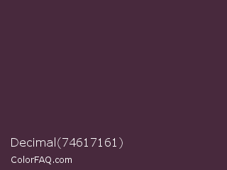 Decimal 74617161 Color is a very dark magenta color and the nearest color is Woody Brown #483131. Hex code #48293d and RGB value is rgb(72,41,61). In RGB color space, this color is composed of 28% red, 16% green, 24% blue, In CMYK color space, this color is composed of 0% cyan, 43% magenta, 15% yellow , 72% black , In HSL color space, this color has a hue angle of 321° , 27% saturation and 22% lightness.