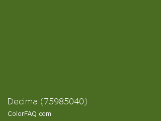 Decimal 75985040 Color is a dark green color and the nearest color is Dark Moss Green #4a5d23. Hex code #4a6b22 and RGB value is rgb(74,107,34). In RGB color space, this color is composed of 29% red, 42% green, 13% blue, In CMYK color space, this color is composed of 31% cyan, 0% magenta, 68% yellow , 58% black , In HSL color space, this color has a hue angle of 87° , 52% saturation and 28% lightness.