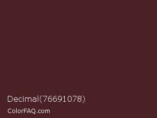 Decimal 76691078 Color is a very dark red color and the nearest color is Crater Brown #462425. Hex code #4b2126 and RGB value is rgb(75,33,38). In RGB color space, this color is composed of 29% red, 13% green, 15% blue, In CMYK color space, this color is composed of 0% cyan, 56% magenta, 49% yellow , 71% black , In HSL color space, this color has a hue angle of 353° , 39% saturation and 21% lightness.