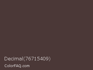 Decimal 76715409 Color is a dark red color and the nearest color is Rock #4d3833. Hex code #4b3837 and RGB value is rgb(75,56,55). In RGB color space, this color is composed of 29% red, 22% green, 22% blue, In CMYK color space, this color is composed of 0% cyan, 25% magenta, 27% yellow , 71% black , In HSL color space, this color has a hue angle of 3° , 15% saturation and 25% lightness.