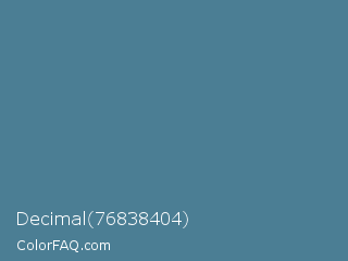 Decimal 76838404 Color is a normal blue color and the nearest color is Smalt Blue #51808f. Hex code #4b7e94 and RGB value is rgb(75,126,148). In RGB color space, this color is composed of 29% red, 49% green, 58% blue, In CMYK color space, this color is composed of 49% cyan, 15% magenta, 0% yellow , 42% black , In HSL color space, this color has a hue angle of 198° , 33% saturation and 44% lightness.
