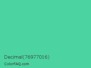 Decimal 76977016 Color is a normal green color and the nearest color is Eucalyptus #44d7a8. Hex code #4bd3a2 and RGB value is rgb(75,211,162). In RGB color space, this color is composed of 29% red, 83% green, 64% blue, In CMYK color space, this color is composed of 64% cyan, 0% magenta, 23% yellow , 17% black , In HSL color space, this color has a hue angle of 158° , 61% saturation and 56% lightness.