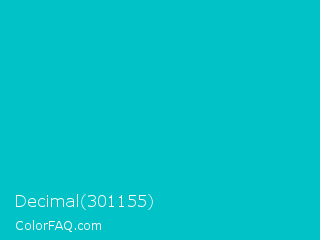 Decimal 301155 Color is a normal cyan color and the nearest color is Turquoise Surf #00c5cd. Hex code #00c2c7 and RGB value is rgb(0,194,199). In RGB color space, this color is composed of 0% red, 76% green, 78% blue, In CMYK color space, this color is composed of 100% cyan, 3% magenta, 0% yellow , 22% black , In HSL color space, this color has a hue angle of 182° , 100% saturation and 39% lightness.