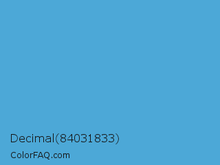 Decimal 84031833 Color is a normal blue color and the nearest color is Shakespeare #4eabd1. Hex code #4ca8d7 and RGB value is rgb(76,168,215). In RGB color space, this color is composed of 30% red, 66% green, 84% blue, In CMYK color space, this color is composed of 65% cyan, 22% magenta, 0% yellow , 16% black , In HSL color space, this color has a hue angle of 200° , 63% saturation and 57% lightness.