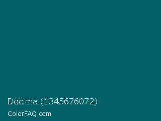 Decimal 1345676072 Color is a very dark cyan color and the nearest color is Blue Stone #016162. Hex code #006068 and RGB value is rgb(0,96,104). In RGB color space, this color is composed of 0% red, 38% green, 41% blue, In CMYK color space, this color is composed of 100% cyan, 8% magenta, 0% yellow , 59% black , In HSL color space, this color has a hue angle of 185° , 100% saturation and 20% lightness.