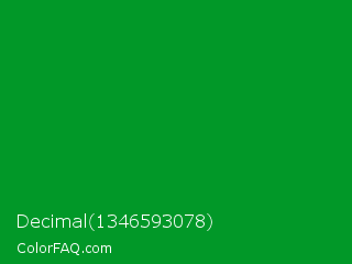 Decimal 1346593078 Color is a dark green color and the nearest color is North Texas Green #059033. Hex code #019828 and RGB value is rgb(1,152,40). In RGB color space, this color is composed of 0% red, 60% green, 16% blue, In CMYK color space, this color is composed of 99% cyan, 0% magenta, 74% yellow , 40% black , In HSL color space, this color has a hue angle of 135° , 99% saturation and 30% lightness.