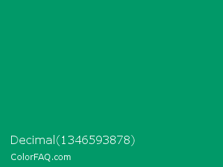Decimal 1346593878 Color is a dark green color and the nearest color is Green Cyan #009966. Hex code #019968 and RGB value is rgb(1,153,104). In RGB color space, this color is composed of 0% red, 60% green, 41% blue, In CMYK color space, this color is composed of 99% cyan, 0% magenta, 32% yellow , 40% black , In HSL color space, this color has a hue angle of 161° , 99% saturation and 30% lightness.