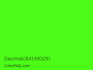 Decimal 84169329 Color is a normal green color and the nearest color is Neon Green #39ff14. Hex code #4cfc17 and RGB value is rgb(76,252,23). In RGB color space, this color is composed of 30% red, 99% green, 9% blue, In CMYK color space, this color is composed of 70% cyan, 0% magenta, 91% yellow , 1% black , In HSL color space, this color has a hue angle of 106° , 97% saturation and 54% lightness.