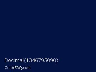 Decimal 1346795090 Color is a very dark blue color and the nearest color is Deep Cove #051040. Hex code #021344 and RGB value is rgb(2,19,68). In RGB color space, this color is composed of 1% red, 7% green, 27% blue, In CMYK color space, this color is composed of 97% cyan, 72% magenta, 0% yellow , 73% black , In HSL color space, this color has a hue angle of 225° , 94% saturation and 14% lightness.