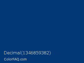 Decimal 1346859382 Color is a dark blue color and the nearest color is Catalina Blue #062a78. Hex code #023878 and RGB value is rgb(2,56,120). In RGB color space, this color is composed of 1% red, 22% green, 47% blue, In CMYK color space, this color is composed of 98% cyan, 53% magenta, 0% yellow , 53% black , In HSL color space, this color has a hue angle of 213° , 97% saturation and 24% lightness.
