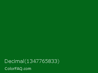 Decimal 1347765833 Color is a very dark green color and the nearest color is Camarone #00581a. Hex code #036719 and RGB value is rgb(3,103,25). In RGB color space, this color is composed of 1% red, 40% green, 10% blue, In CMYK color space, this color is composed of 97% cyan, 0% magenta, 76% yellow , 60% black , In HSL color space, this color has a hue angle of 133° , 94% saturation and 21% lightness.