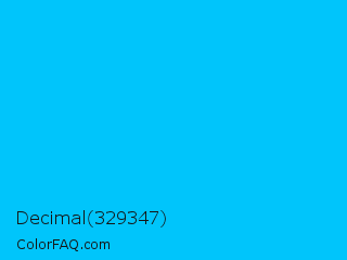 Decimal 329347 Color is a normal cyan color and the nearest color is Deep Sky Blue #00bfff. Hex code #00c5fb and RGB value is rgb(0,197,251). In RGB color space, this color is composed of 0% red, 77% green, 98% blue, In CMYK color space, this color is composed of 100% cyan, 22% magenta, 0% yellow , 2% black , In HSL color space, this color has a hue angle of 193° , 100% saturation and 49% lightness.