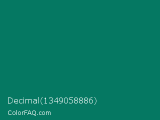 Decimal 1349058886 Color is a dark cyan color and the nearest color is Tropical Rain Forest #00755e. Hex code #057862 and RGB value is rgb(5,120,98). In RGB color space, this color is composed of 2% red, 47% green, 38% blue, In CMYK color space, this color is composed of 96% cyan, 0% magenta, 18% yellow , 53% black , In HSL color space, this color has a hue angle of 169° , 92% saturation and 25% lightness.