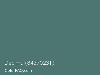 Decimal 84370231 Color is a normal cyan color and the nearest color is Cutty Sark #507672. Hex code #4d7571 and RGB value is rgb(77,117,113). In RGB color space, this color is composed of 30% red, 46% green, 44% blue, In CMYK color space, this color is composed of 34% cyan, 0% magenta, 3% yellow , 54% black , In HSL color space, this color has a hue angle of 174° , 21% saturation and 38% lightness.