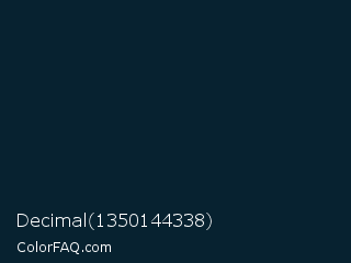 Decimal 1350144338 Color is a very dark blue color and the nearest color is Daintree #012731. Hex code #072230 and RGB value is rgb(7,34,48). In RGB color space, this color is composed of 3% red, 13% green, 19% blue, In CMYK color space, this color is composed of 85% cyan, 29% magenta, 0% yellow , 81% black , In HSL color space, this color has a hue angle of 200° , 75% saturation and 11% lightness.