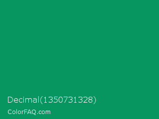 Decimal 1350731328 Color is a normal green color and the nearest color is Green Cyan #009966. Hex code #079560 and RGB value is rgb(7,149,96). In RGB color space, this color is composed of 3% red, 58% green, 38% blue, In CMYK color space, this color is composed of 95% cyan, 0% magenta, 36% yellow , 42% black , In HSL color space, this color has a hue angle of 158° , 91% saturation and 31% lightness.