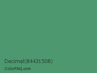 Decimal 84431508 Color is a normal green color and the nearest color is Fruit Salad #4f9d5d. Hex code #4d986e and RGB value is rgb(77,152,110). In RGB color space, this color is composed of 30% red, 60% green, 43% blue, In CMYK color space, this color is composed of 49% cyan, 0% magenta, 28% yellow , 40% black , In HSL color space, this color has a hue angle of 146° , 33% saturation and 45% lightness.