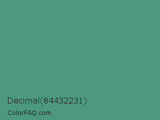 Decimal 84432231 Color is a normal green color and the nearest color is Wintergreen Dream #56887d. Hex code #4d997f and RGB value is rgb(77,153,127). In RGB color space, this color is composed of 30% red, 60% green, 50% blue, In CMYK color space, this color is composed of 50% cyan, 0% magenta, 17% yellow , 40% black , In HSL color space, this color has a hue angle of 159° , 33% saturation and 45% lightness.