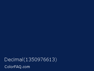 Decimal 1350976613 Color is a very dark blue color and the nearest color is Downriver #092256. Hex code #082151 and RGB value is rgb(8,33,81). In RGB color space, this color is composed of 3% red, 13% green, 32% blue, In CMYK color space, this color is composed of 90% cyan, 59% magenta, 0% yellow , 68% black , In HSL color space, this color has a hue angle of 219° , 82% saturation and 17% lightness.