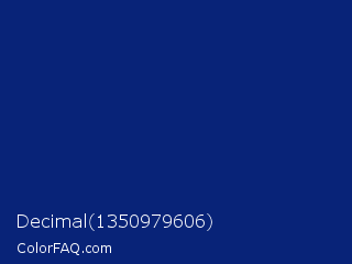 Decimal 1350979606 Color is a dark blue color and the nearest color is Catalina Blue #062a78. Hex code #082378 and RGB value is rgb(8,35,120). In RGB color space, this color is composed of 3% red, 14% green, 47% blue, In CMYK color space, this color is composed of 93% cyan, 71% magenta, 0% yellow , 53% black , In HSL color space, this color has a hue angle of 226° , 88% saturation and 25% lightness.