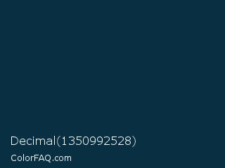 Decimal 1350992528 Color is a very dark blue color and the nearest color is Blue Whale #042e4c. Hex code #083042 and RGB value is rgb(8,48,66). In RGB color space, this color is composed of 3% red, 19% green, 26% blue, In CMYK color space, this color is composed of 88% cyan, 27% magenta, 0% yellow , 74% black , In HSL color space, this color has a hue angle of 199° , 78% saturation and 15% lightness.