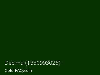 Decimal 1350993026 Color is a very dark green color and the nearest color is Deep Fir #002900. Hex code #083102 and RGB value is rgb(8,49,2). In RGB color space, this color is composed of 3% red, 19% green, 1% blue, In CMYK color space, this color is composed of 84% cyan, 0% magenta, 96% yellow , 81% black , In HSL color space, this color has a hue angle of 112° , 92% saturation and 10% lightness.