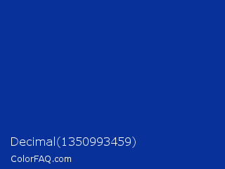 Decimal 1350993459 Color is a normal blue color and the nearest color is Smalt #003399. Hex code #083199 and RGB value is rgb(8,49,153). In RGB color space, this color is composed of 3% red, 19% green, 60% blue, In CMYK color space, this color is composed of 95% cyan, 68% magenta, 0% yellow , 40% black , In HSL color space, this color has a hue angle of 223° , 90% saturation and 32% lightness.