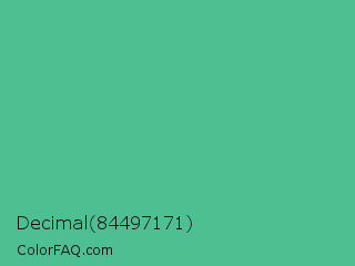 Decimal 84497171 Color is a normal green color and the nearest color is Ocean Green #48bf91. Hex code #4dbf91 and RGB value is rgb(77,191,145). In RGB color space, this color is composed of 30% red, 75% green, 57% blue, In CMYK color space, this color is composed of 60% cyan, 0% magenta, 24% yellow , 25% black , In HSL color space, this color has a hue angle of 156° , 47% saturation and 53% lightness.